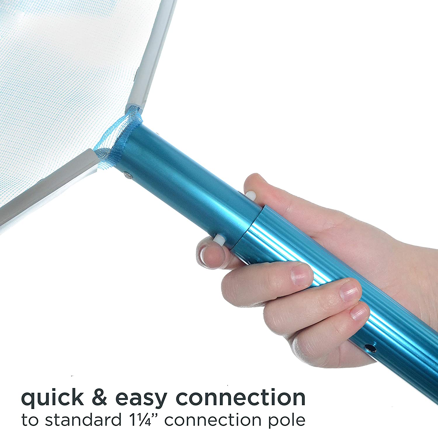 Aluminum Leaf Skimmer with PE Net -Heavy-duty aluminum rim and PE netting are long-lasting and durable, but gentle on pool siding and liners -Lightweight, easy to carry and use. Scoops out leaves, bugs & other kinds of debris from your swimming pool, pond, hot tub, fountain or large fish tank. Material:- Made of PE (PolyEthylene) mesh and Aluminum frame, durable for use Pool cleaning tool:- The pool net can be used to scoop out leaves, debris, bugs Application:- The leaf skimmer net is suitable for pool, spa, fountain, pond, hot tub, etc.